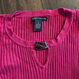 Pink Ribbed 3/4 Sleeve Sweater