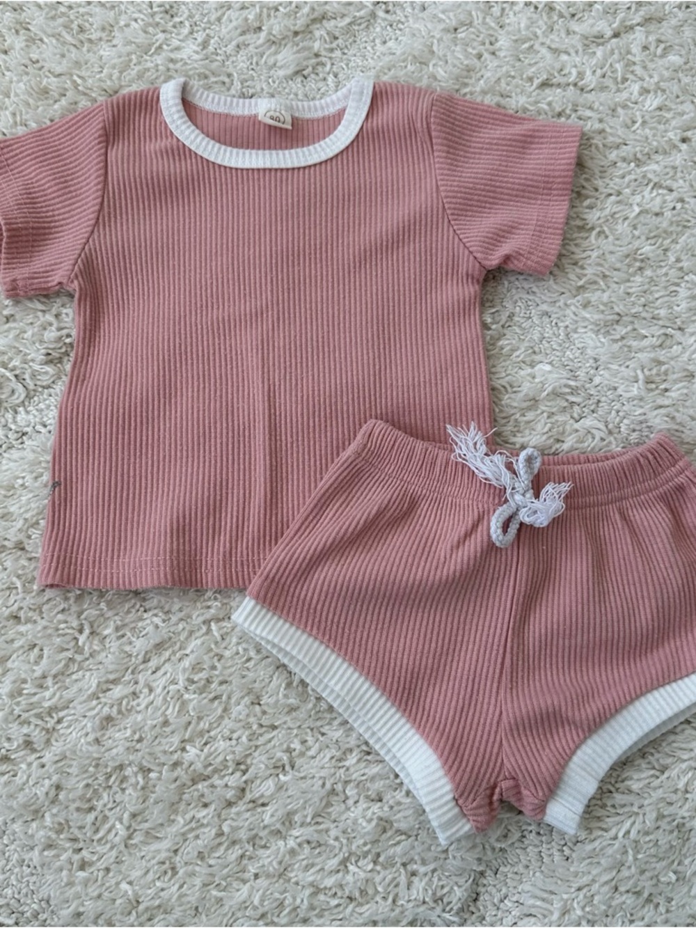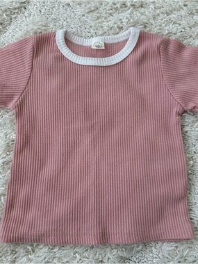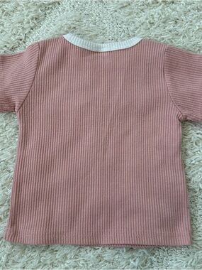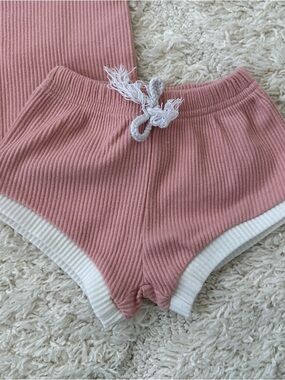 EUC! Pink ribbed baby set. Includes short sleeve top and shorts with white piping.