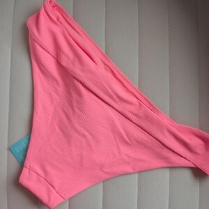 Flattering pink ribbed bikini bottom. Perfect for beach days or lounging at the pool. This color looks great with a tan too! NWT and liner