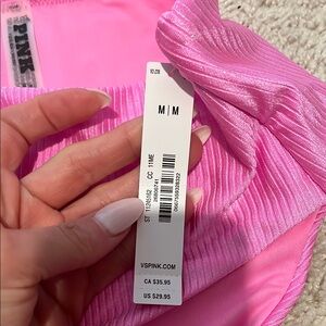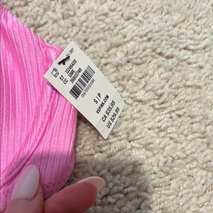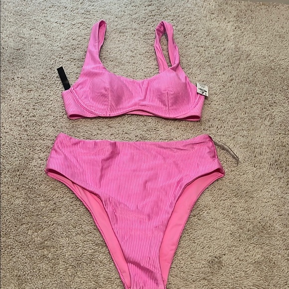 Stylish pink ribbed bikini set. Perfect for beach days.