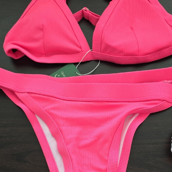 Dive into summer with this vibrant pink ribbed bikini set. Perfect for beach days and poolside lounging.