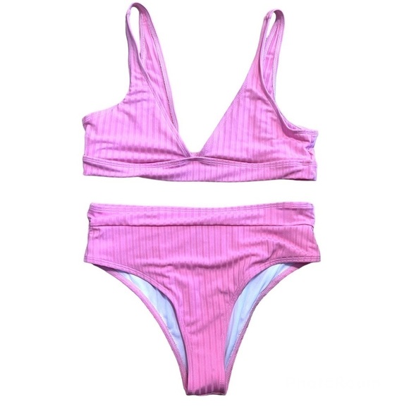 Pink Ribbed Bikini Set