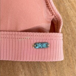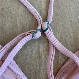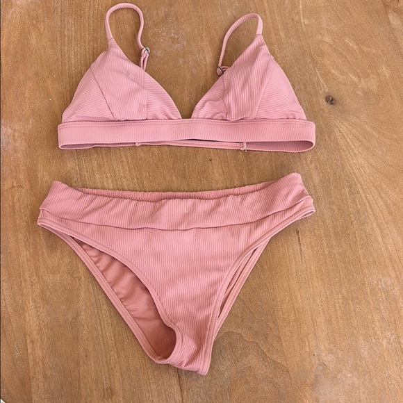 Stylish pink ribbed bikini set. Perfect for beach days. Minor rust around the straps. See pictures for details Barely worn