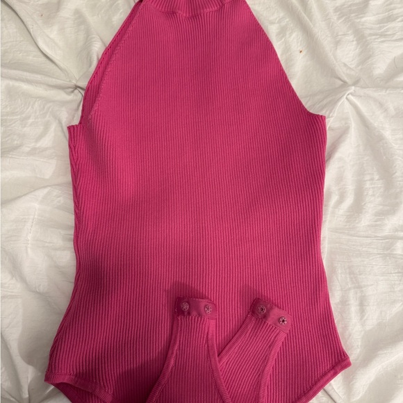 Elevate your style with this chic pink ribbed bodysuit. Perfect for any occasion, it offers a flattering fit and comfortable wear.