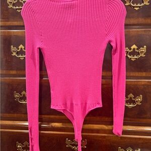 Elevate your style with this vibrant pink ribbed bodysuit. Perfect for any occasion, it offers a sleek and comfortable fit.