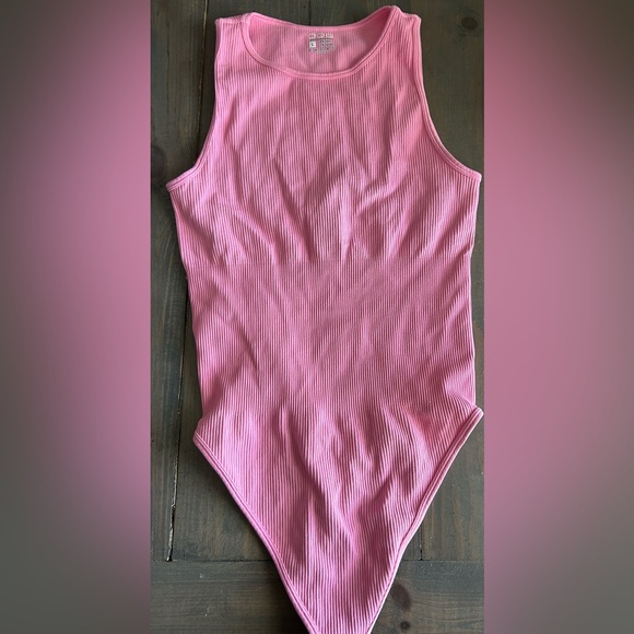 Elevate your wardrobe with this stylish pink ribbed bodysuit. Perfect for layering or wearing on its own, this piece offers both comfort and style.