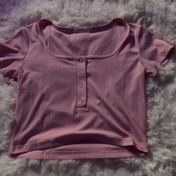 This stylish pink ribbed top features a button-up design, perfect for casual outings. Enjoy comfort and style with this versatile piece.