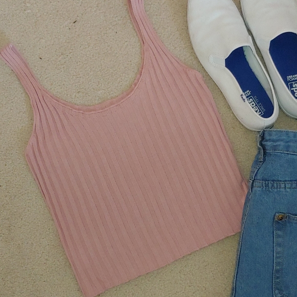 Pink Ribbed Crop Tank