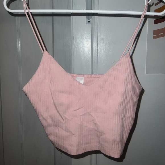 this medium pink spaghetti strap top is from aerie it’s lined with a silk lining/bra!