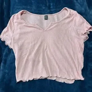 Elevate your style with this chic pink ribbed crop top. Perfect for casual outings or layering, it offers a comfortable and trendy fit.