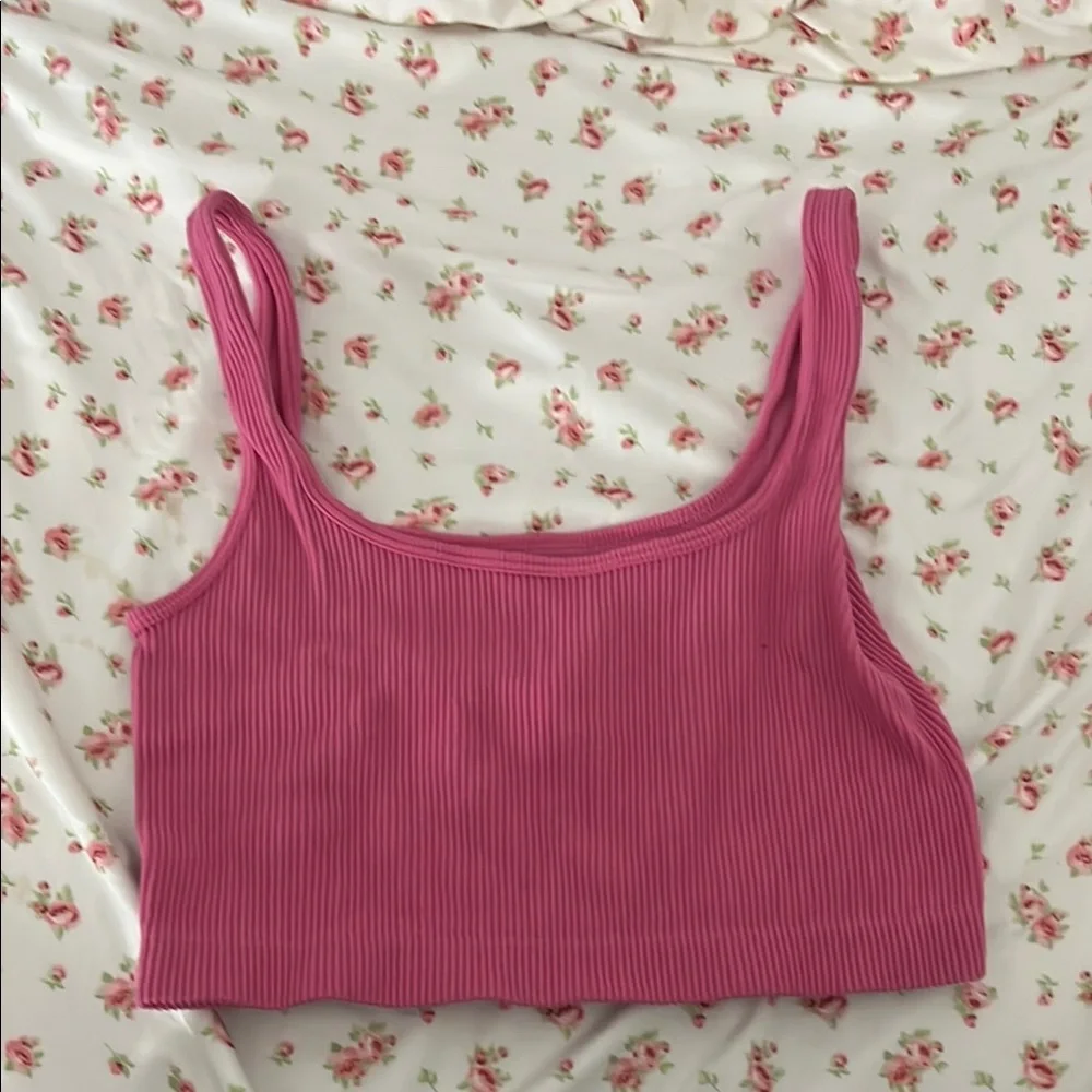 Stylish pink ribbed crop top perfect for casual outings. Soft and comfortable fabric for all-day wear. ( small-medium )