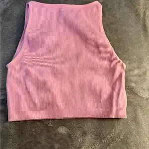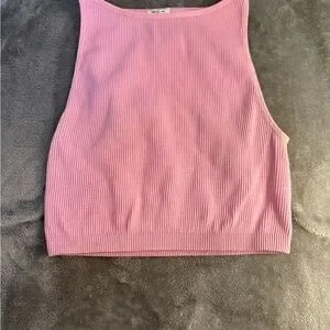 Stylish pink ribbed crop top. Perfect for casual outings.