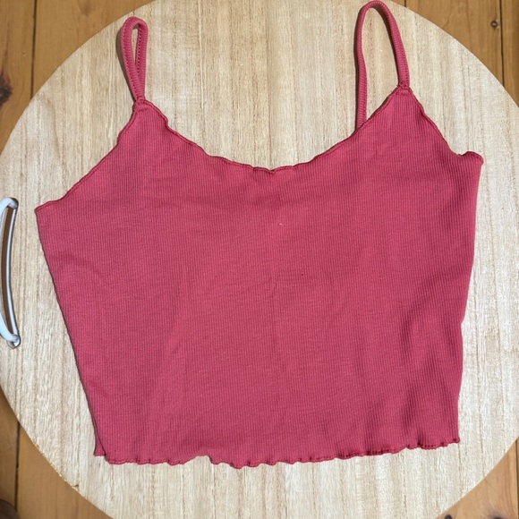 Stylish red ribbed crop top with spaghetti straps. Perfect for casual wear. Never worn