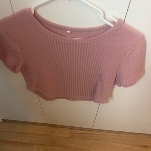 Elevate your style with this chic pink ribbed crop top. Perfect for casual outings or layering.