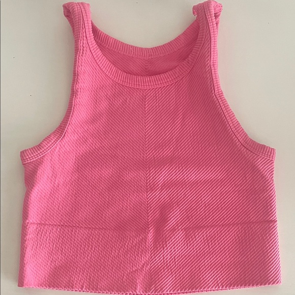Stylish pink ribbed crop top. Perfect for casual wear.