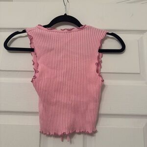 Pink Ribbed Crop Top with Ruffle Trim