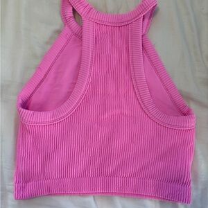 Pink Ribbed Halter Crop Top