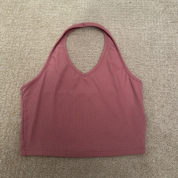 Stylish pink ribbed halter top. Perfect for casual outings.