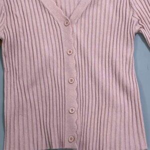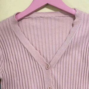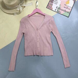 Pink Ribbed Knit Button-Down V-Neck Cardigan