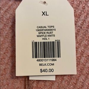 Cozy pink ribbed knit sweater. Features a relaxed fit and drawstring neckline. Perfect for casual wear.