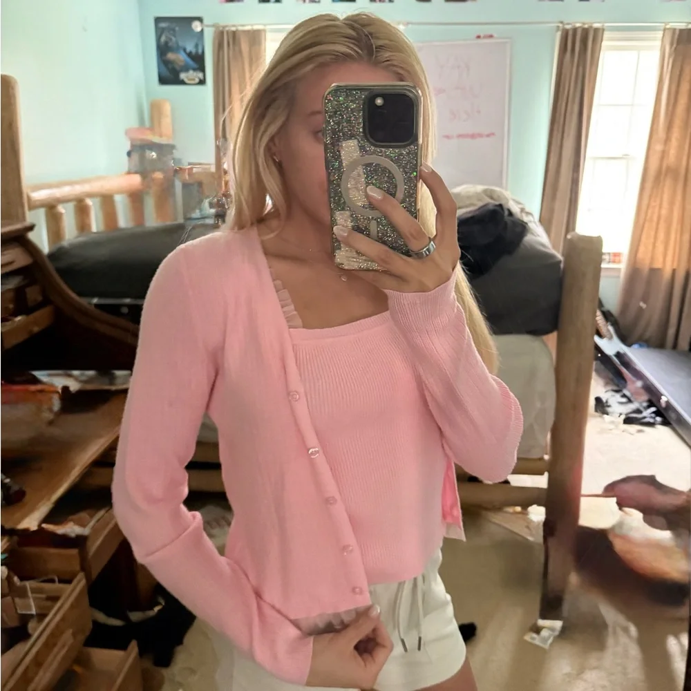 Pink Ribbed Knit Tank & Cardigan Set