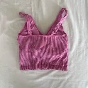 Stylish pink ribbed knit tank top. Perfect for casual wear.