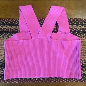 Stylish pink ribbed knit tank top with wide straps. Perfect for casual wear.