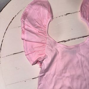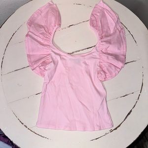 Pink Ribbed Knit Top with Ruffle Sleeves