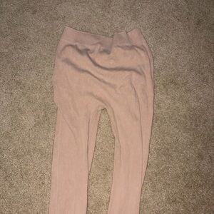 Comfortable pink ribbed leggings. Perfect for casual wear.