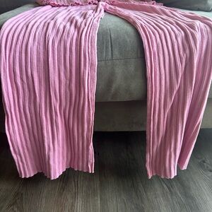 Cozy pink ribbed lounge set. Button-up top with matching pants.