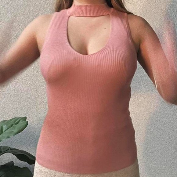 Pink Ribbed Low Cut Top