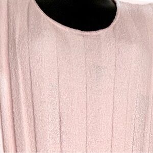 NWOT Stylish pink ribbed knit long dress! The image features a sleeveless, pink, ribbed knit garment, which appears to be the top section of a long dress or maxi dress.
