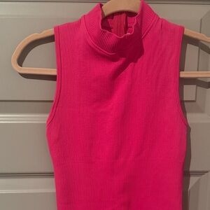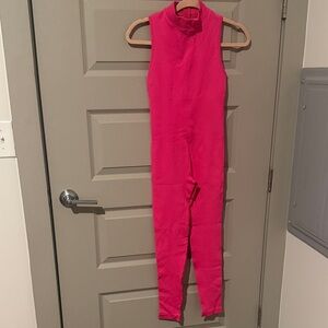 NEW WITHOUT TAGS💞 Pair with your favorite sweater and step out in style with this vibrant pink ribbed sleeveless jumpsuit. Invisible back zipper. Thick body sculpting material. Perfect for any occasion, it offers a blend of comfort and fashion.