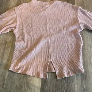 Cozy pink ribbed sweater. Perfect for layering. Soft and comfortable.