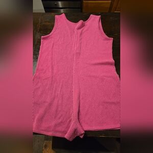 Sleeveless ribbed romper in vibrant pink 💗 BARBIE HOT PINK.