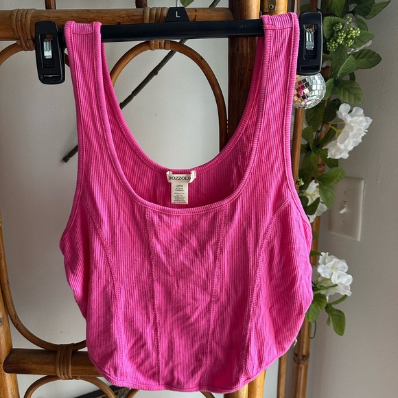 Vibrant pink ribbed tank top. Perfect for casual wear. Size larger, condition: used, brand: Bozzolo