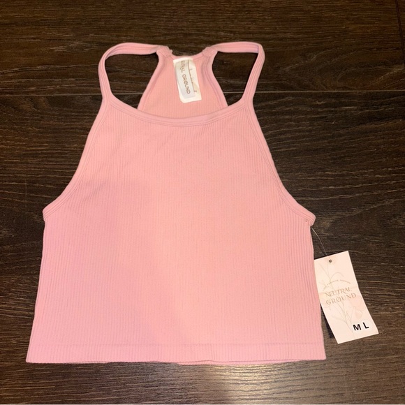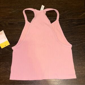 Stylish pink ribbed tank top with a racerback design. Perfect for casual wear. NWT