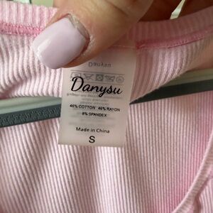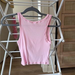 Stylish pink ribbed tank top with built in bra. Perfect for casual wear.