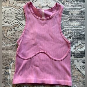 Stylish pink ribbed tank top with unique stitching design. Perfect for casual or athletic wear. Purchased from a boutique on the cape!