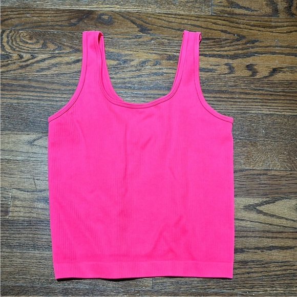 Brighten up your wardrobe with this vibrant pink ribbed tank top. Perfect for layering or wearing on its own, this top offers both comfort and style.