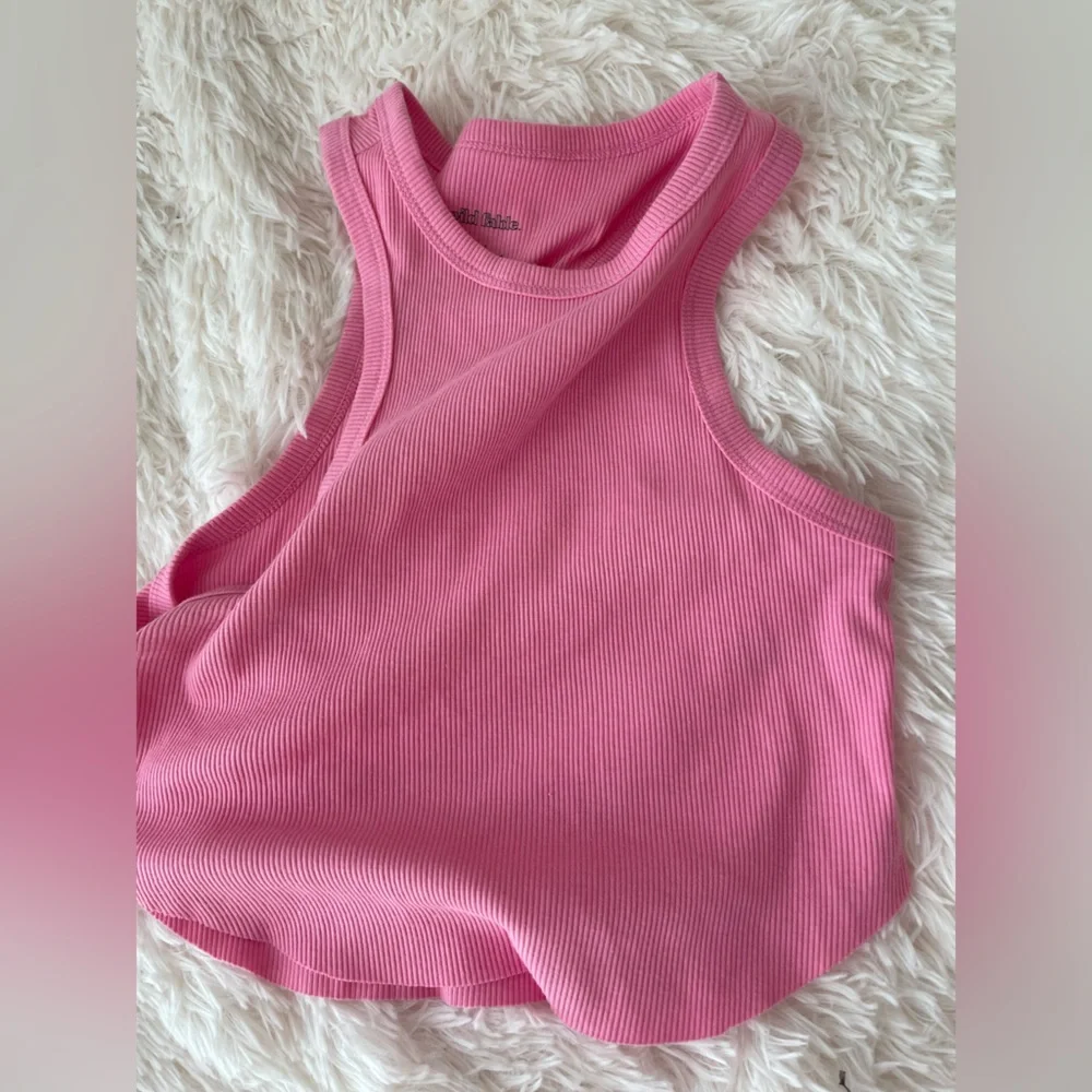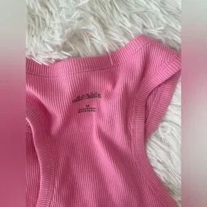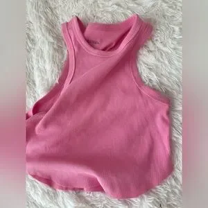 Stylish pink ribbed tank top. Perfect for casual wear.