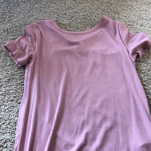 Dark blush pink ribbed tee, very flattering and cute. Easy to layer. Size M.