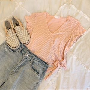the cutest baby pink top to pair with jeans, short, or even a cute skirt! could be dressed up or worn casual. super soft material and perfect for a cute dinner date! 🥰