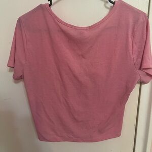 Pink Ribbed Tie-Front Top