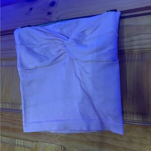 Stylish pink ribbed tube top with a twist front design. Perfect for casual outings.