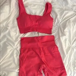 Pink Ribbed Two-Piece Set