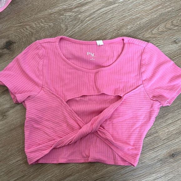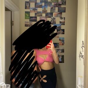 Elevate your style with this pink ribbed top. Perfect for going out, has a cute twisty cut out. Size Medium.