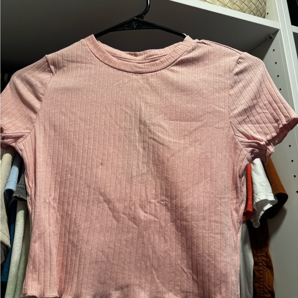 Elevate your wardrobe with this stylish pink ribbed top. Perfect for any occasion, this top offers both comfort and elegance.