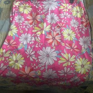 Stylish pink ribbed blouse with a wrap design. Matching skirt for the set. Ideal for casual outings. Never worn but no tags.