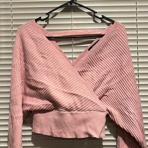 Pink Ribbed Wrap Top